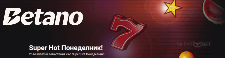 Понеделник е. Началото на седмицата започва с още изненади в Бетано онлайн казино за почитателите на Супер Хот игрите на Амюзнет (бившето EGT). Става дума за Betano Super Hot Понеделник – промоция активна само в първия работен ден. С нея може да спечелите 25 безплатни завъртания за 20 Super Hot от Amusnet Interactive.