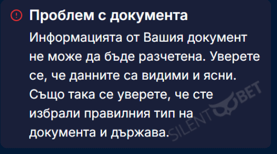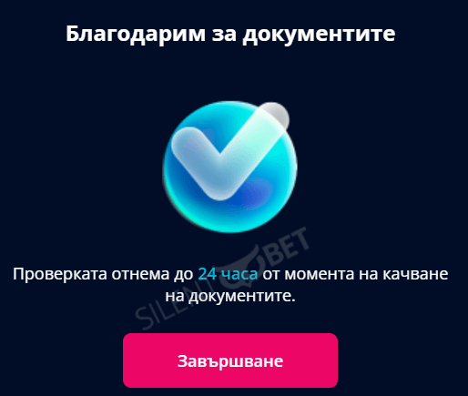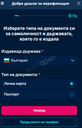 Документите, които се приемат, са лична карта и международен паспорт. Докато тествахме процесът по верификация качихме документи с формат jpg и png и бяха приети.